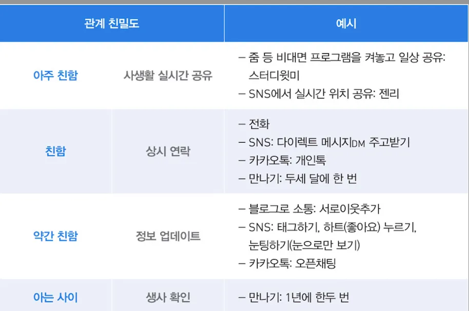 관계 관리를 하면서 주기적으로 SNS 계정을 새로 만들거나, 불필요한 관계는 주기적으로 정리함.