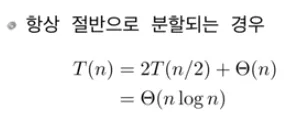 분할: 해결하고자 하는 문제를 작은 크기의 동일한 문제들로 분할