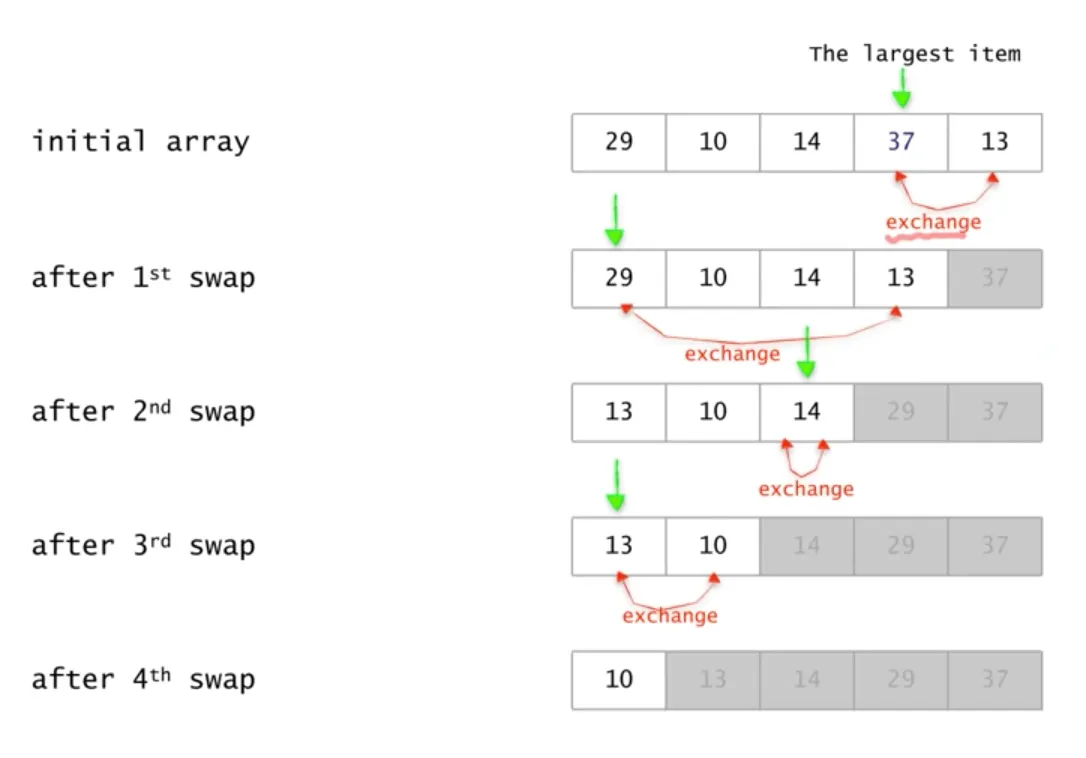// 최악의 경우 T(n) = (n - 1) + (n - 2) + .... + 2 + 1 = O(n * n) = ((n*(n - 1))/2)