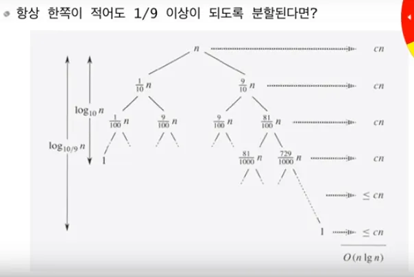 피벗을 어떤 값으로 정하느냐에 따라서 복잡도가 달라짐. (최악은 최댓값 혹은 최솟값)