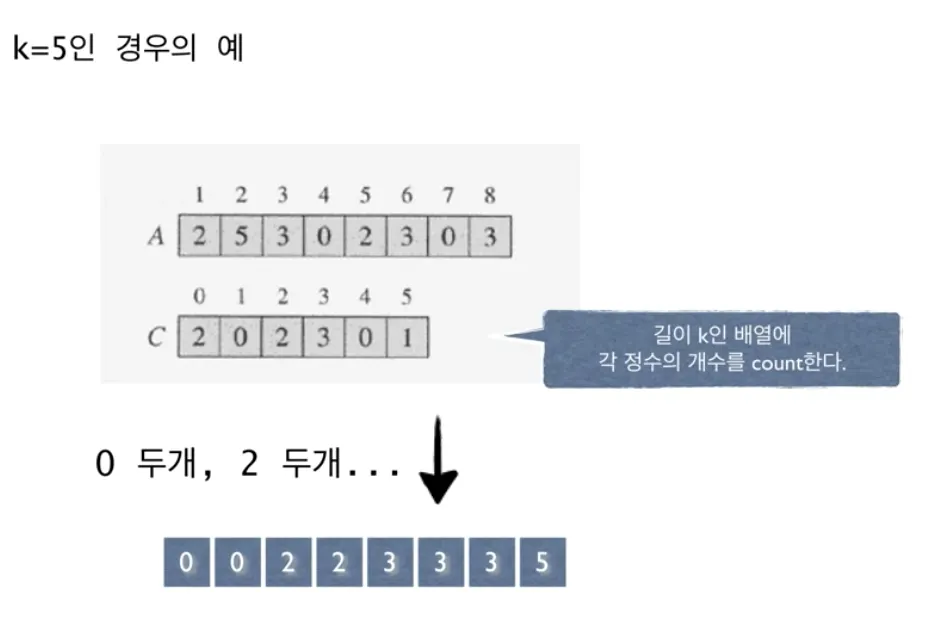 n개의 정수를 정렬하라. 단 모든 정수는 0에서 k 사이의 정수이다.