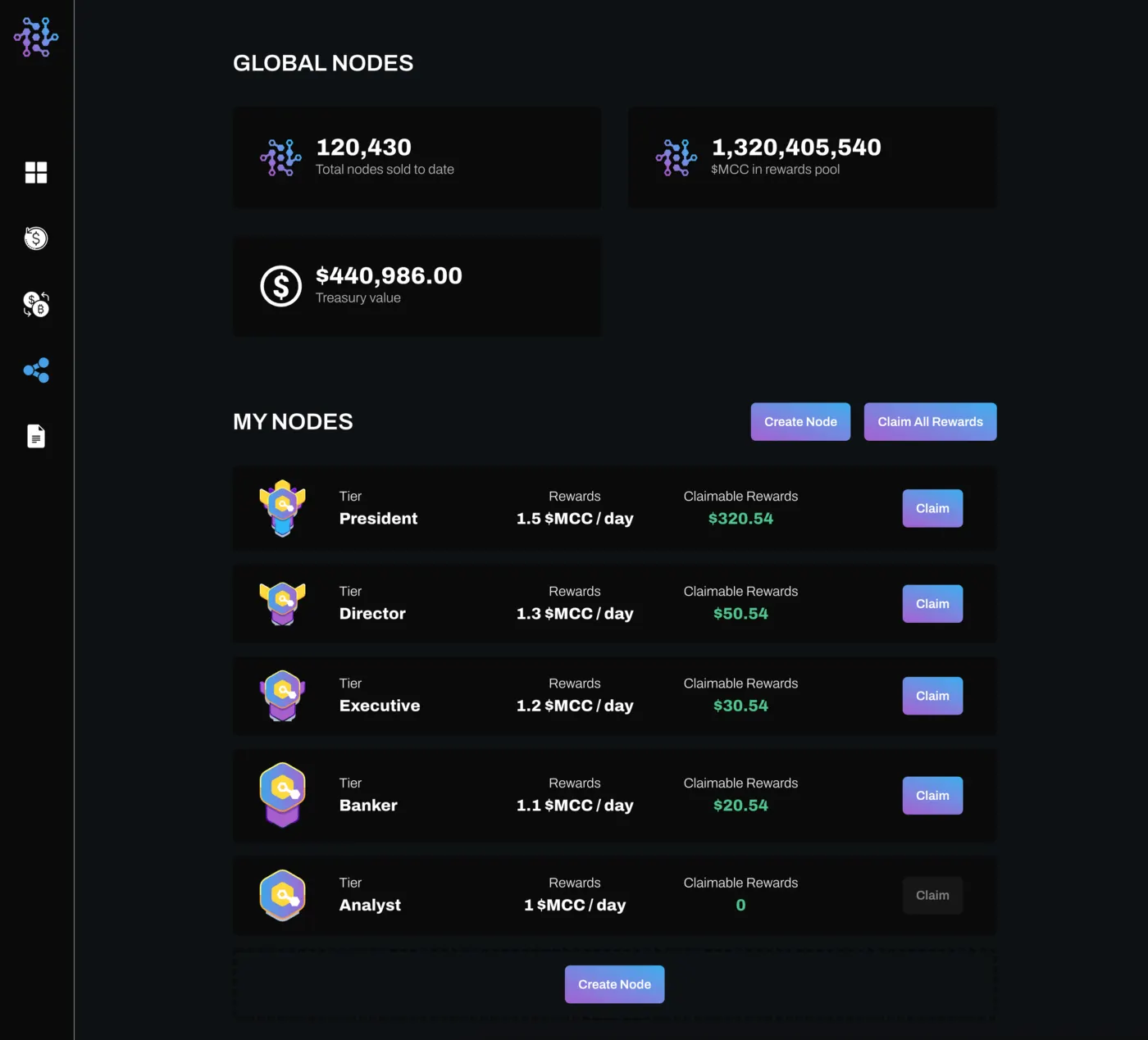 Minting (3, 3):Β Users can mint via BUSD, WBNB, CCF and in time other assets (such as MCC) to receive discounted, vested DEFI which can be staked after vesting.