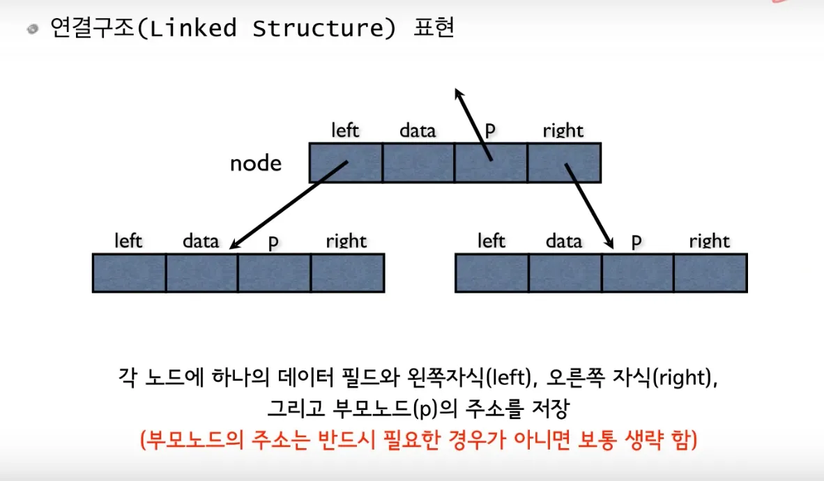 트리는 노드들과 노드를 연결하는 링크(혹은 브랜치)들로 구성됨