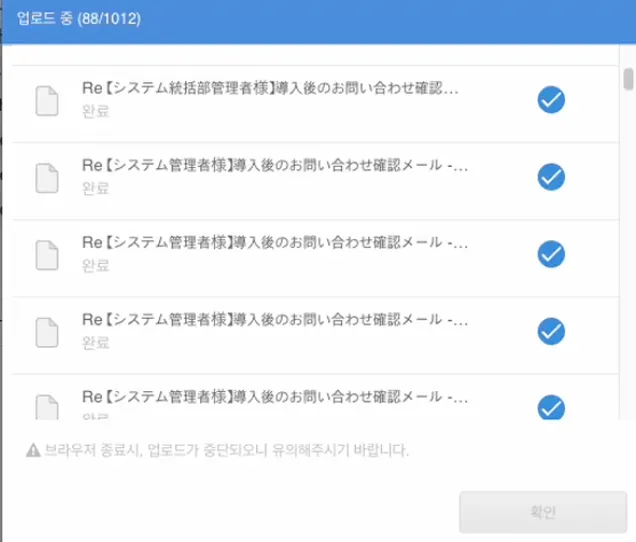 확인해보니 drop box 에서도 마찬가지로 업로드 시 각 파일의 상태를 표시하는 UI 가 존재했다. 다만 drop box 의 경우는 스크롤 내에서 보이는 영역만 렌더링 을 했다는 점이 큰 차이점이었다. 아래는 시험삼아 drop box 에 한번에 약 1000개의 파일을 업로드한 영상이다.