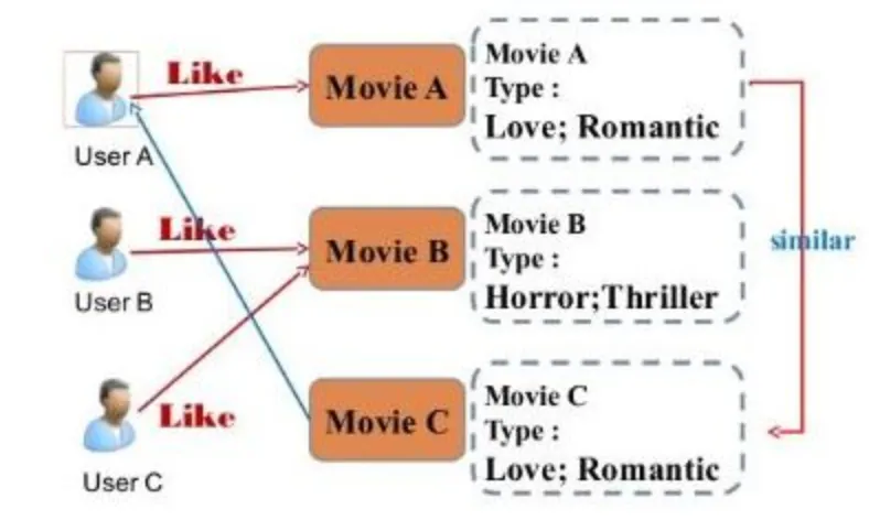 사용자가 특정 아이템을 선호하면 그 아이템과 비슷한 콘텐츠를 추천하는 방식