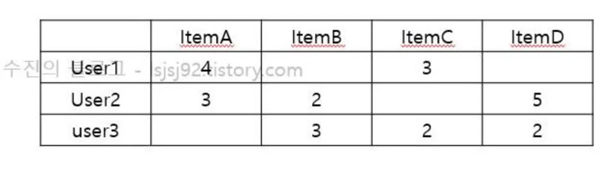 사용자가 아이템에 매긴 평가 및 행동 양식을 기반으로 추천을 해주는 시스템