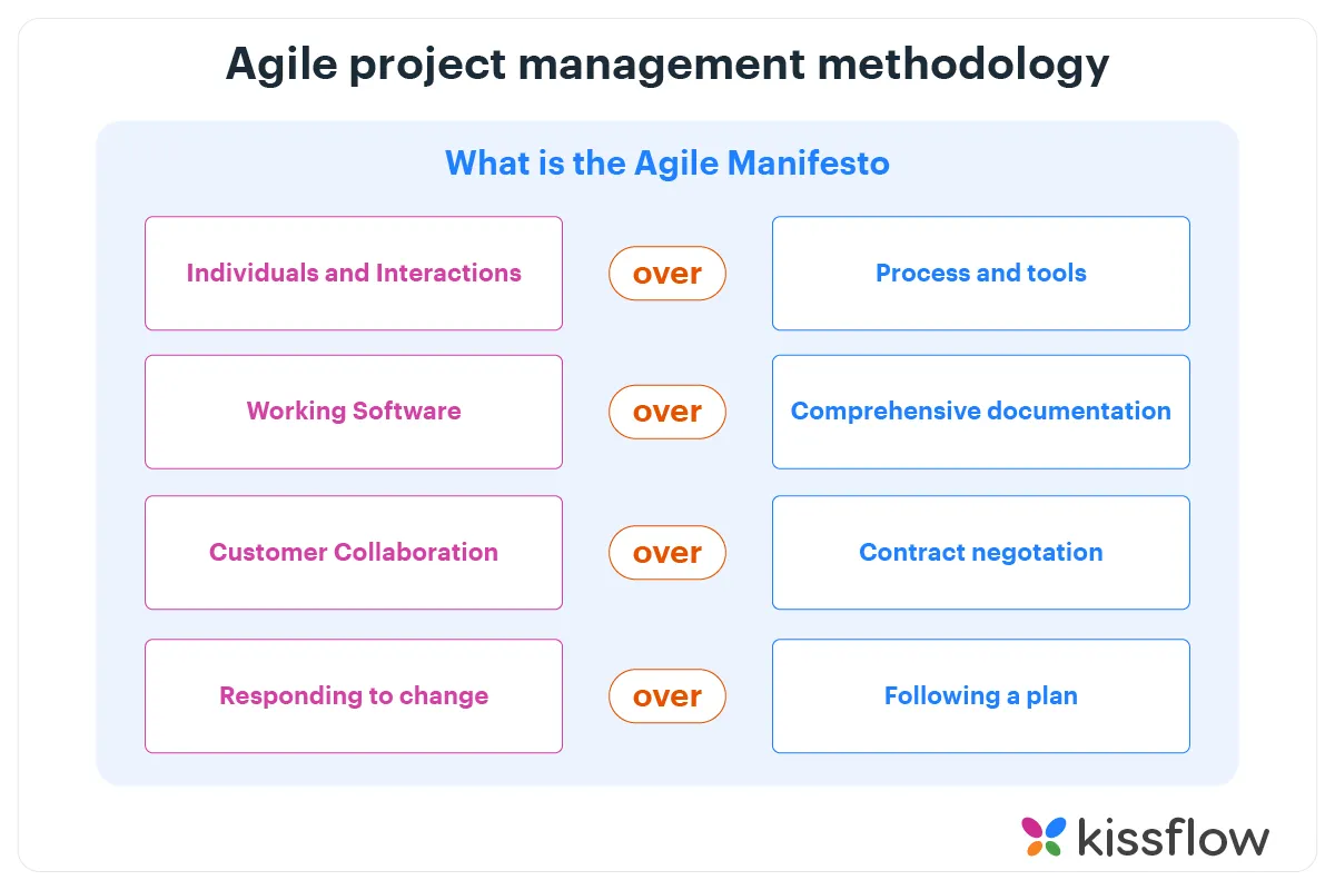 현대 project management 의 방법론의 근간이 된 문서. 4가지 핵심 가치와 12가지 원칙으로 구성. 2001 년 17명의 software engineer 들이 유타주의 스키장에서 만들었다고 함.