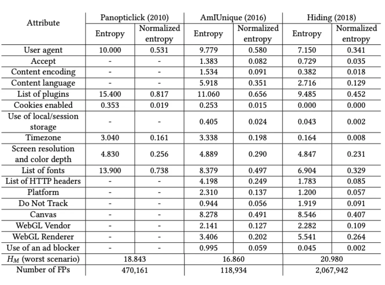 BFP 는 웹사이트 소유자가 client 가 가진 변수들의 데이터 집합을 통해서 데이터들을 수집하고, user 를 특정할 수 있도록 하는 것이다. 수집할 수 있는 데이터들은 아래와 같다