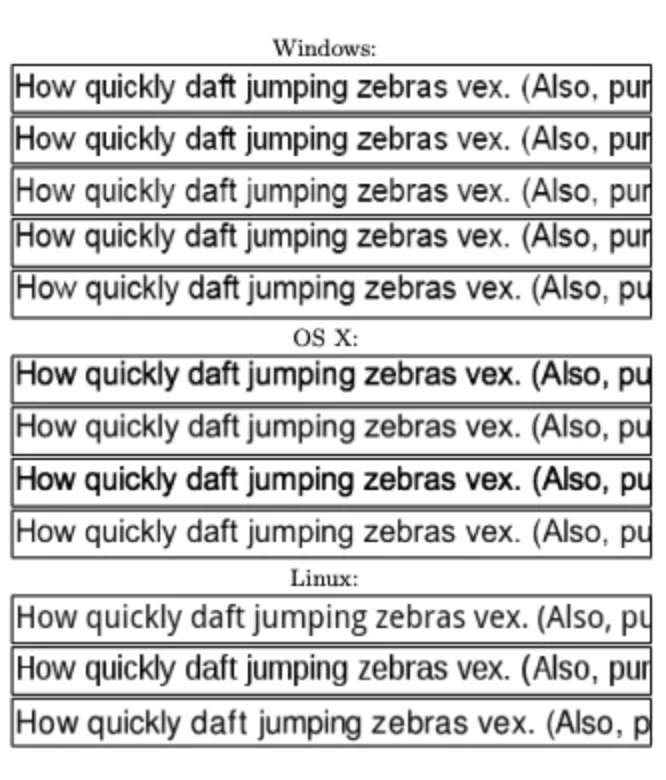 Arial 20px 를 렌더링하는 13가지 폰트들. 다 같은 소스 코드다.